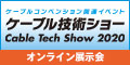 弊社は、来る2020年7月1日(水)~8月31日(月)にオンラインで実施される「ケーブル技術ショー2020 オンライン展示会」に出展いたします。