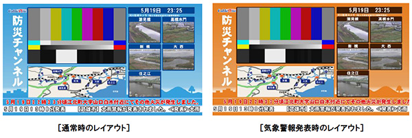株式会社ケーブルワン(本社:佐賀県武雄市、代表取締役社長:大野裕志)は、株式会社サテライトコミュニケーションズネットワーク(以下、SCN、本社:鳥取県米子市、代表取締役:髙橋孝之)の「コミネット マルチ画面ソリューション」を採用し、第2コミチャン(121ch)で情報カメラを活用した「防災チャンネル」の放送を6月1日から開始しました。