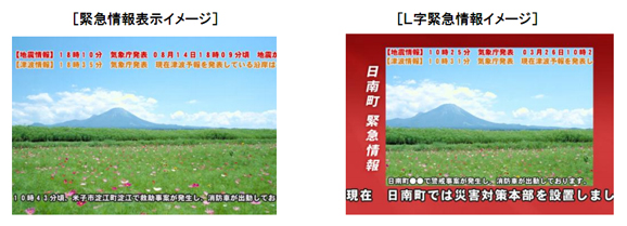 日南町(所在地:鳥取県日野郡日南町、町長 増原聡)は、緊急情報の放送を 9月1日から開始致します。地震などが発生すると速報として24時間365日 即時にコミュニティチャンネル「ちゃんねる日南」(デジタル113ch、アナログ3ch)に自動表示されます。日南町では、昨今の異常気象による気象災害の激甚化、集中豪雨や豪雪、竜巻など突発的に発生する緊急事態において、住民に対する速報性のある情報提供が求められていた。また、高齢世帯が多く、高齢化率45%を超える本町において、こうした気象状況の変化をいち早く放送することは、防災的側面からも非常に有効な手段になります。