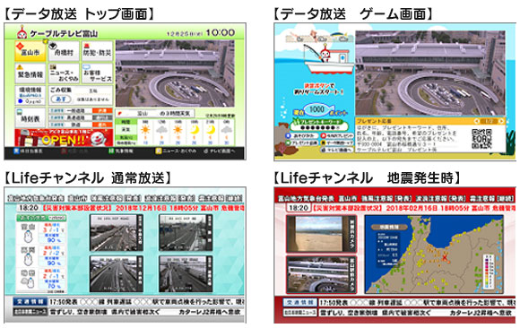 株式会社サテライトコミュニケーションズネットワーク(本社:鳥取県米子市、代表取締役:髙橋孝之 以下、SCN)は、株式会社ケーブルテレビ富山(本社:富山県富山市、代表取締役社長:赤丸 準一)がコミュニティチャンネルにて提供しているLifeチャンネル(122ch)及びデータ放送(091ch)のリニューアルに合わせ、システムからコンテンツ提供まで担当し、12月から放送開始しました。