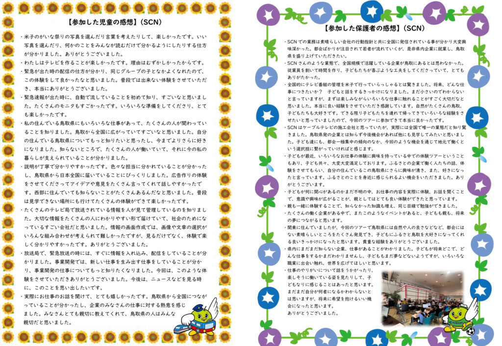 鳥取県教育委員会主催で開催された「おしごと体験ツアー」に、弊社も参加させていただきました。