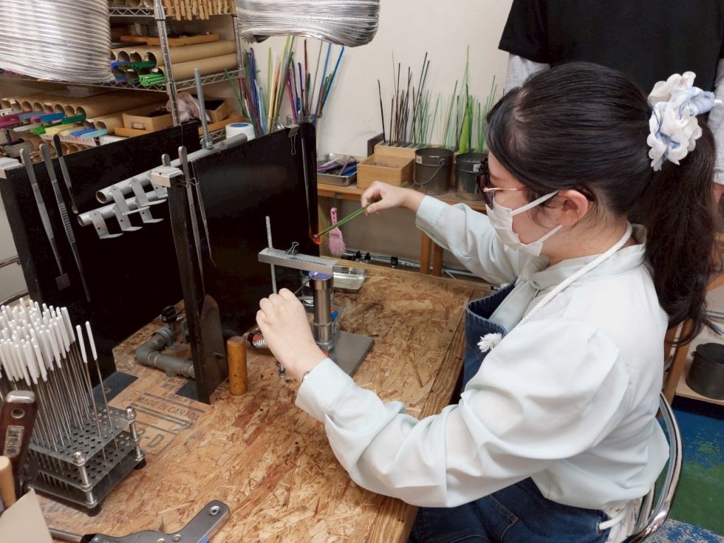 推しをイメージしたとんぼ玉を作っている瞬間です。